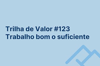 🏞️ Trilha de Valor #123 - Trabalho bom o suficiente